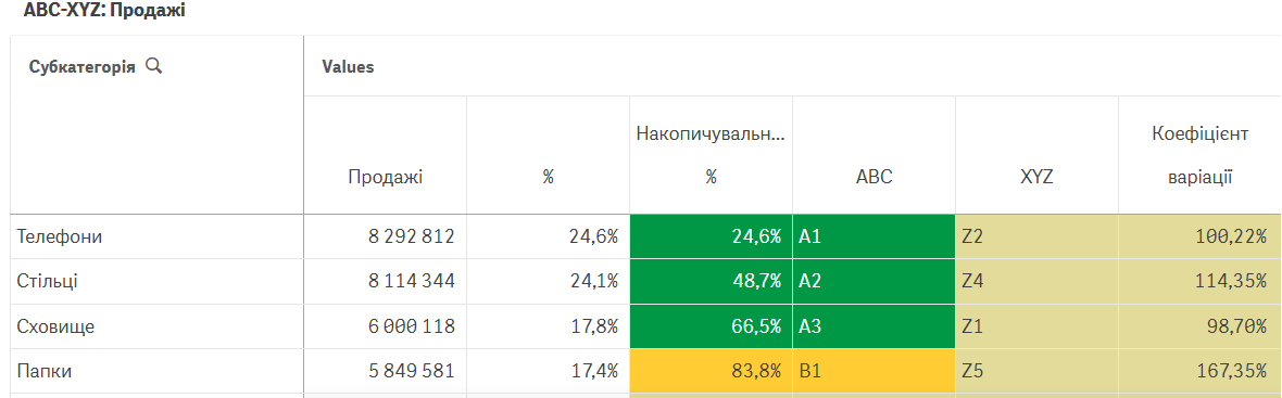 В Qlik эти категории выделены цветом и снабжены управленческими рекомендациями, так что вы сразу видите не только, в какой группе товар, но и что с ним делать.