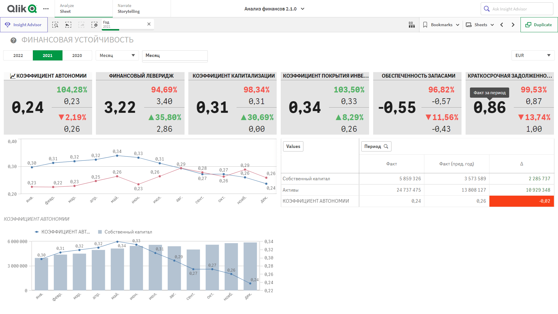 Анализ показателей финансовой устойчивости предприятия – это важный элемент общего управления, который нельзя упускать из виду при любых изменениях в структуре капитала или рынка. В условиях, когда стратегия существования исключительно за счет собственных средств является заведомо проигрышной, руководителям приходится постоянно балансировать между риском, доходностью и безопасной деятельностью в кратко- и долгосрочной перспективе, быстро реагируя на любые возможности и угрозы. Оперативный, полный и наиболее точный анализ коэффициентов финансовой устойчивости помогает принимать взвешенные решения на каждом из этапов функционирования организации. Именно эту задачу решает бизнес аналитика, открывающая доступ к полной достоверной информации в любой момент времени.