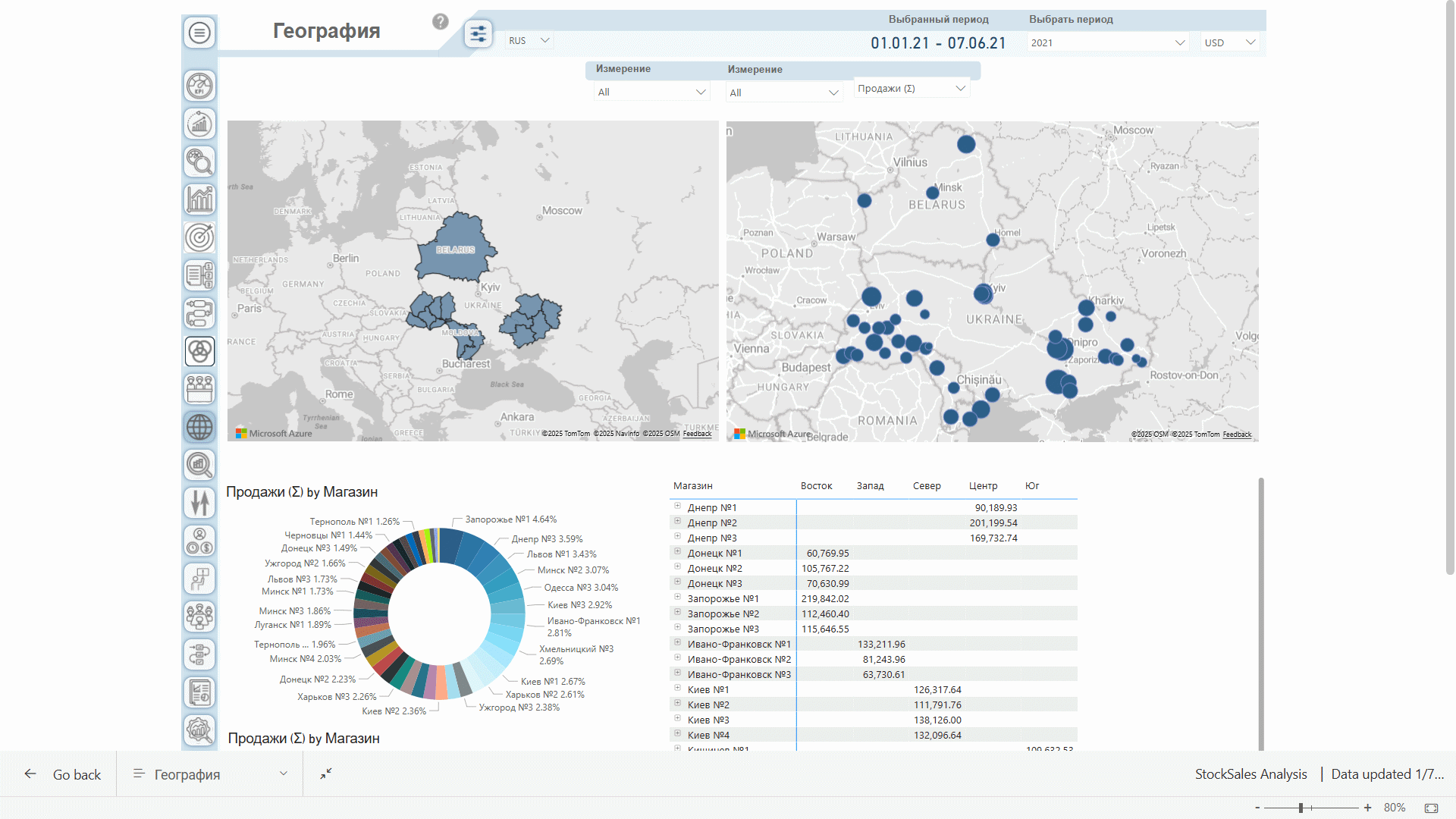 Наш продукт позволяет провести комплексный анализ продаж магазина, оценить, как идут продажи в компании в целом, насколько сопоставимы прогнозируемый план продаж с реальными объемами. Также можно детально анализировать товарные запасы и товарооборот, себестоимость продукции, понесенные расходы и многое другое.