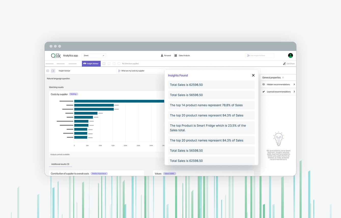 Работа software-продукта Qlik построена на базе искусственного интеллекта, благодаря которому автоматизированы основные процессы создания аналитики и подготовки данных.
