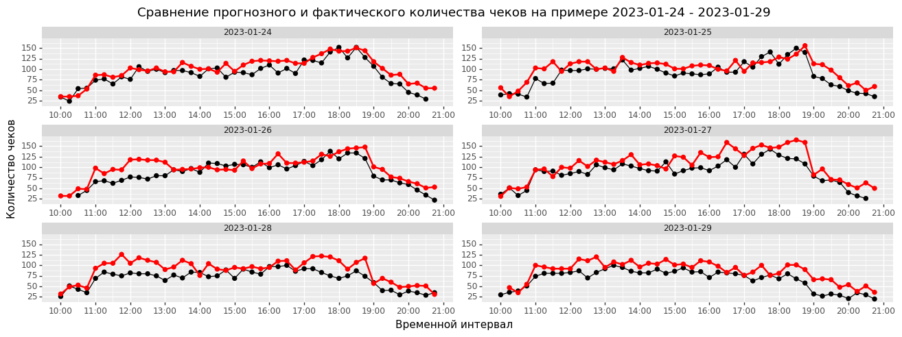 Практически все эти данные доступны, но использование их при ручном прогнозе с использованием электронных таблиц очень трудоемко. Автоматизированное прогнозирование с использованием методов машинного обучения позволяет получить точность от 80%, как для горизонта от одного до двенадцати месяцев, так и уточнять прогноз на неделю или на следующий час. При этом прогноз на 5 недель строится меньше одной минуты. Такая скорость, точность и гибкость прогнозирования дает возможность менеджерам супермаркета намного качественнее подготовиться к приему покупателей и легко получать ответы на вопросы: