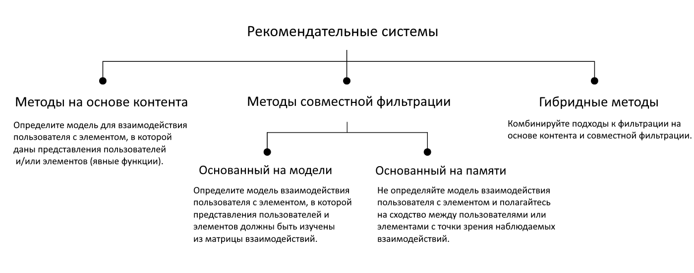 Вся рекомендательная сеть может быть распределена на несколько категорий (по Rocca, 2019):