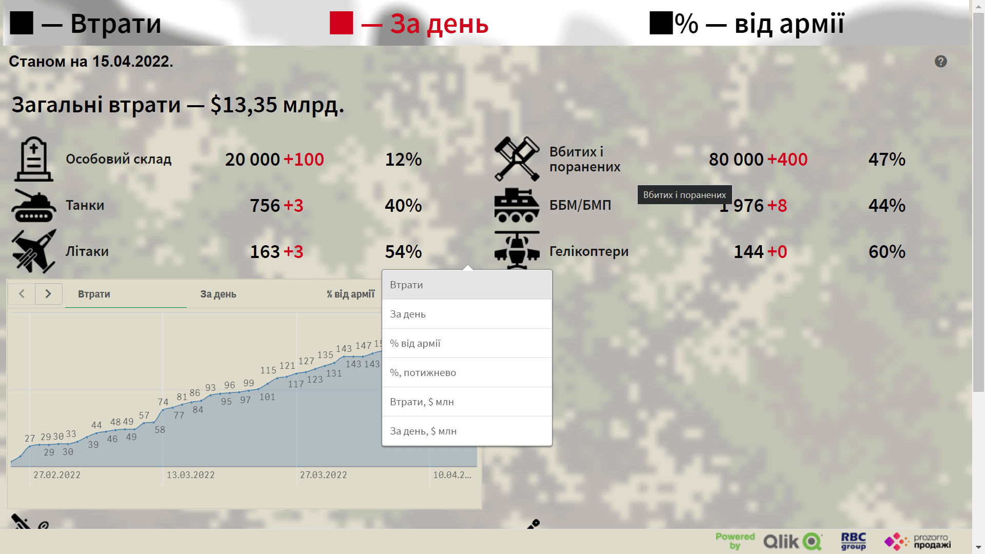 “З початку війни ми побачили, що люди мають запит не тільки знати загальну кількість втрат ворога, а й відслідковувати динаміку. Тому що їхні втрати – результати роботи наших військ. Наші партнери із RBC Group запропонували спільно створити аналітику на основі даних про втрати росіян. А оскільки ми є адептами публічності, прозорості та прийняття рішень на основі даних, вирішили використати наш BI-портал bi.prozorro.sale. Тепер статистику втрат російської армії стало набагато зручніше аналізувати у нашому модулі аналітики», – розповів Олексій Соболєв. директор ДП “Прозорро.Продажі”.